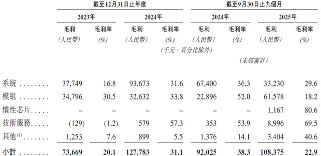 导远科技的收入结构在2025年发生剧变,毛利率较低的车载定位模组产品收入占比激增,而毛利率较高的系统产品收入被大幅挤压。这一结构性变化,叠加为获取订单而进行的激烈价格竞争,导致其整体毛利率在2025年前三季度暴跌15.4个百分点。