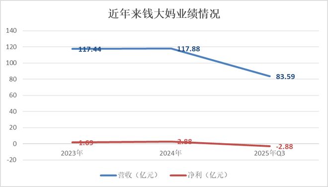 然而,光鲜的规模之下,财务数据却呈现出明显的失衡与压力。在营收方面,公司增长已进入平台期,2023年与2024年营收均约为117亿元,2025年前三季度营收为83.59亿元,同比略有下降。