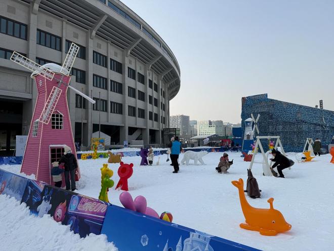 北京工人体育场的“燃冬嘉年华”吸引亲子家庭参与游玩。
