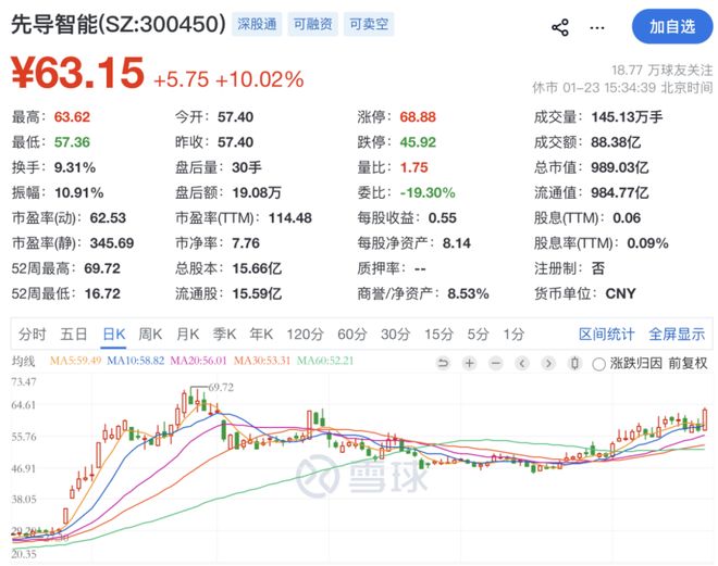 股价方面,1月23日,先导智能股价大幅走强,截至收盘,涨幅达10.02%,总市值升至989.03亿元。