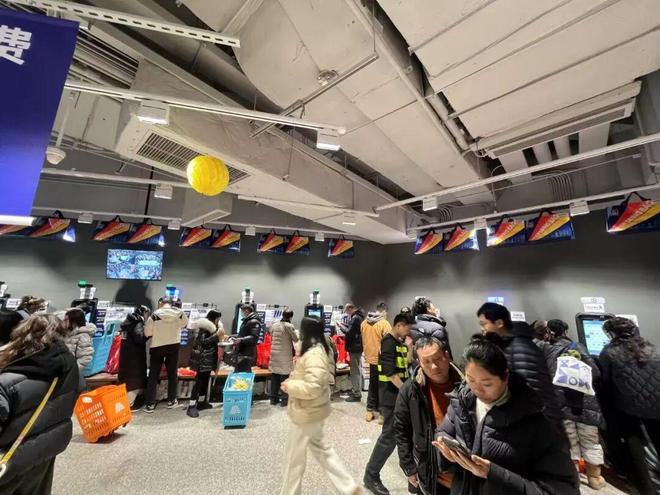奥乐齐南京巧刻广场店设置了18组自助收银机台,2组人工收银机台。