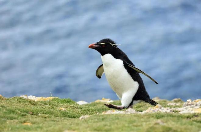 2025年12月19日,在马尔维纳斯群岛(英称福克兰群岛)海豹湾拍摄的一只跳岩企鹅 图:新华社