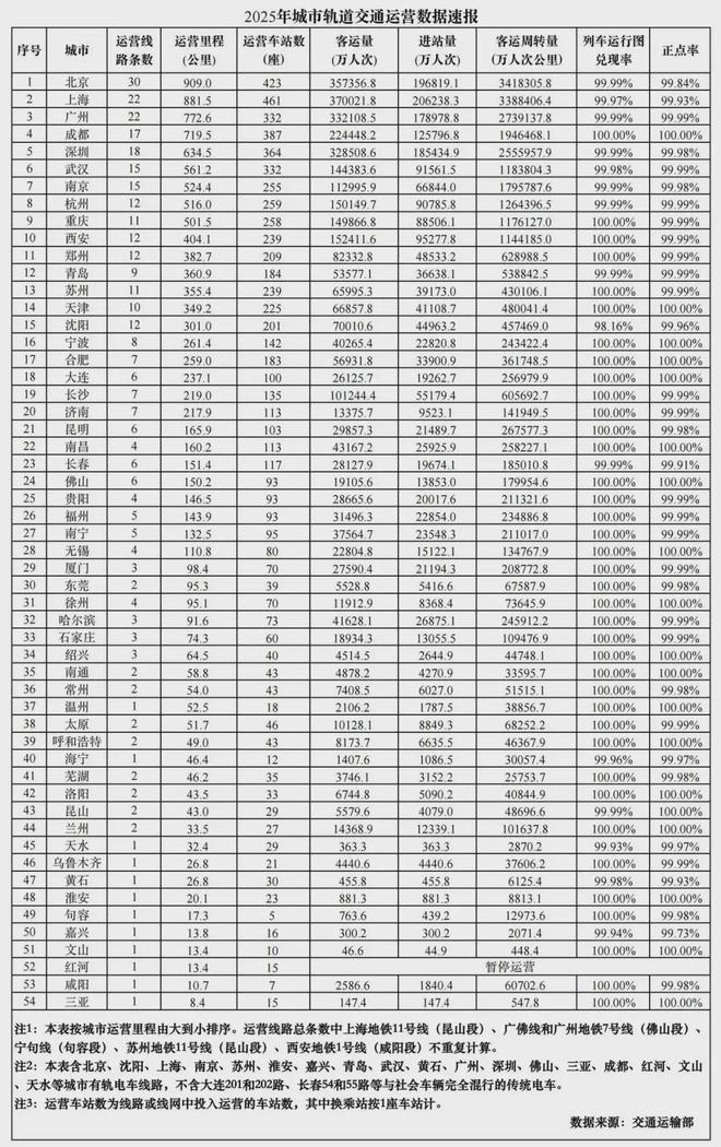 轨道交通方面,截至2025年底,全国共有54个城市开通运营城市轨道交通线路343条,运营里程达11710公里。