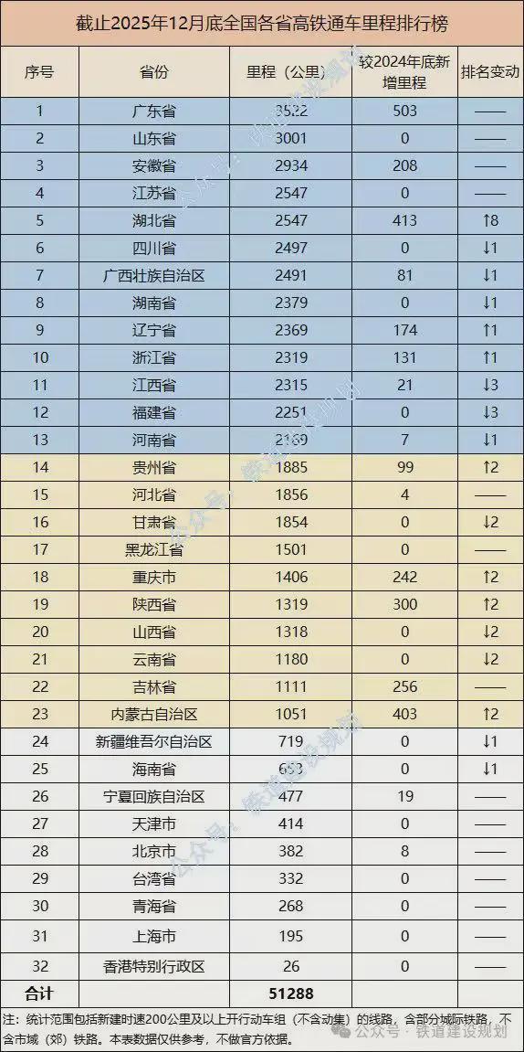 接近一半的省份,高铁运营里程超过了2000公里。