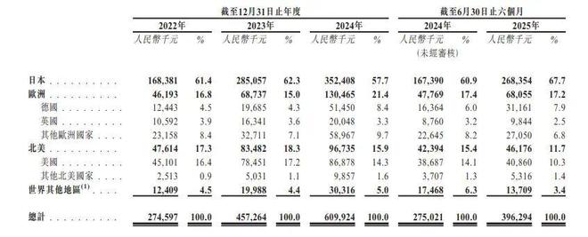 2025年上半年,日本市场带来2.68亿元收入,占总营收的67.7%,接近七成。