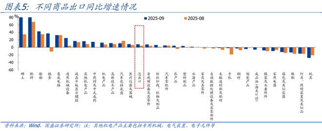 4、进口看, 9月进口同比大升至7.4%、创近一年半来新高,季度同比也从连续三个季度负增后首次转正,铜矿&铁矿等工业金属、集成电路是主拉动。5、往后看,展望四季度出口,制约主要是高基数、近期中美关税再升级的扰动、以及对美出口降幅可能仍大,支撑主要来自非洲、东盟、欧盟、拉美等非美区域,产品结构偏强的预计还是电子中间品、机械、交运设备等;综合看,预计四季度出口同比将有所回落、但大概率延续为正。