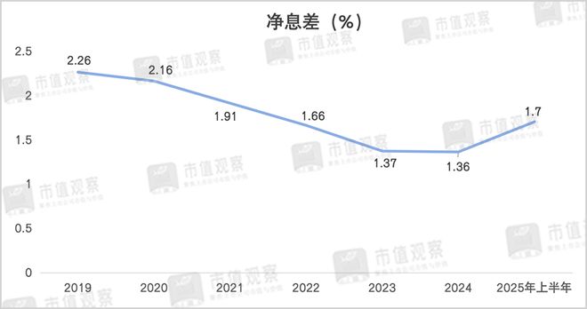 就比如在商业银行传统的息差业务上,上半年该行的利息净收入同比增长了59.92%至38.98亿,是拉动收入增长的主要推手,由此也推动了净息差的显著回暖,上半年1.7%的数据相比2024的1.36%明显提升。