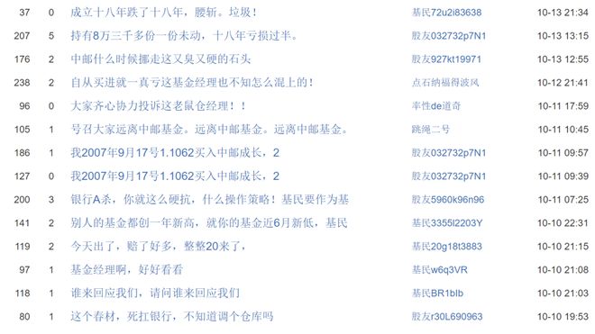 这之前,中邮核心成长混合似乎是被“下蛊”了,成立18年经历12任基金经理,累计亏损近50%,在中国公募基金史上极为罕见,基民忍不住在基金吧留言,“成立十八年跌了十八年,腰斩,垃圾!”