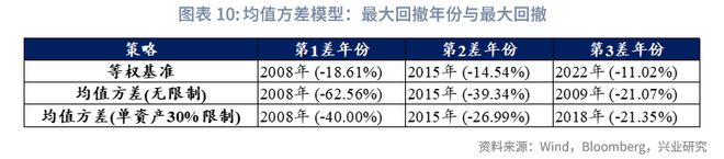 本文主要采用的是实务简化版本,即波动率倒数版本;协方差版本风险平价模型的结果,可参见附录“风险平价模型-协方差版相关结果”,该版本结果回撤较大且稳定性欠佳。