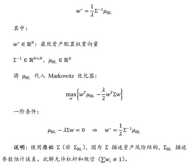 BL模型的核心优势在于搭建了量化模型与基金经理主观能动性的衔接桥梁:既依托市场集体智慧(均衡收益),又为专业投研判断(主观观点)提供落地场景。因此,该模型自诞生后便被高盛资管部门广泛应用,并迅速推广至全球养老金(乌云高, 2022)、主权财富基金及资产管理公司,成为机构资产配置的标准工具之一。但其局限性亦十分显著:最终配置效果高度依赖投资者主观观点的质量与准确性。