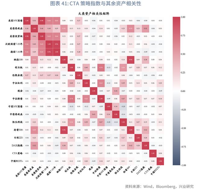 考虑到不同资产间可能存在较高相关性(从大类资产配置视角看具备较强替代性),因此本文在进入具体配置模型前,先通过相关性矩阵分析对上述初步确定的18类大类资产开展二次筛选,保留低相关资产,筛选结果如下:(1)在美国10年期国债与美债投资级两类资产中,最终选定美国10年期国债。二者相关系数达0.98,且美国10年期国债通常充当市场利率标杆,跟踪该资产的基金产品更为丰富,因此确定保留美国10年期国债指数;(2)纳指100与标普500指数的相关性为0.96,其中纳指100更能反映全球科技行业发展趋势,故本文选择纳指100作为配置标的,但在具体实践场景下,二者也可实现相互替代;(3)德债7-10年指数与泛欧国债7-10年指数的相关性达0.96,考虑到泛欧国债涵盖法国、意大利等多国国债,覆盖范围更广泛,本文选择泛欧国债7-10年指数;(4)日经225与德国DAX指数均代表非美发达国家资本市场,从与其余资产的相关性角度考量,日经225具备更强的分散配置价值,因此本文选定该指数。经上述筛选剔除后,最终剩余14个资产子类,分别为:现金、美国10年期国债、美债高收益、中国10年期国债、中债高收益、泛欧国债7-10年、创业板、中证红利、恒生科技、纳指100、日经225、中证转债、中国REITs、伦敦金现。
