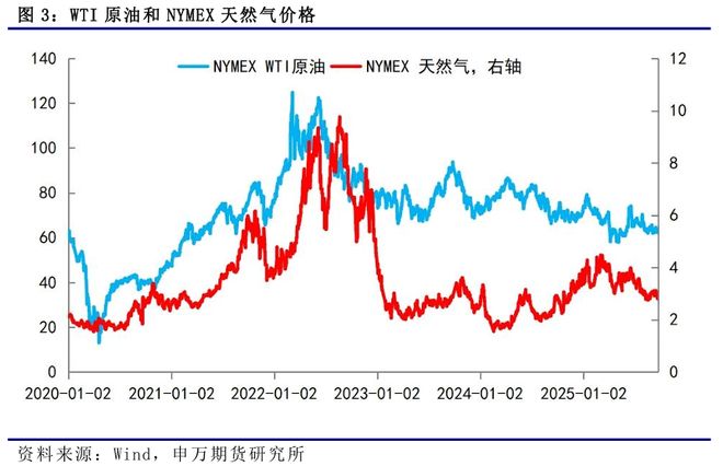 美国的能源结构以石油和天然气为主,凭借页岩油气技术,美国成为全球最主要的石油和天然气生产国,能源自给能力强,外部依赖度低。因此美国PPI虽然也会受到能源价格的影响,但是影响程度远低于欧洲。原油价格受全球供需影响,其波动会影响美国汽油、柴油等能源价格,进而传导至运输等环节,同时原油价格也会影响其他化工品的生产成本,因此原油价格对PPI整体走势有较为重要的影响。美国天然气价格相对稳定,波动远小于欧洲,对美国能源价格和电力生产成本的影响相对可控,相较于欧洲,天然气对美国PPI影响较小。2021年,疫情后经济重启,能源需求反弹,但供应端恢复较慢,原油和天然气价格回升,驱动PPI回升。2022年俄乌冲突爆发后,原油和美国天然气价格均大幅上涨,是PPI大幅上行的最大贡献。2023年以来,全球经济增长放缓,美联储加息对能源需求也有一定抑制,原油和天然气价格回落,带动PPI降温。2024年以来,原油价格偏弱震荡,天然气价格也维持宽幅震荡,对PPI的影响趋于温和。