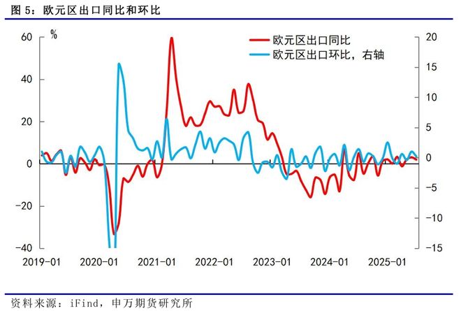 欧洲PPI在疫情后出现巨大波动,主要是受能源价格影响。欧洲能源结构高度依赖进口,尤其是对俄罗斯依赖度较高。2022年俄乌冲突爆发,西方对俄罗斯进行制裁,作为反击,俄罗斯减少对欧洲的天然气供应,“北溪一号”停止输气,导致天然气价格暴涨。除天然气之外,石油、煤炭等其他能源价格也出现上涨,带动欧洲能源价格和电力价格飙升,通过工业生产成本传导至工业品价格,拉动欧洲PPI大幅上行。对了应对能源危机,减少对俄罗斯的过度依赖,欧洲采取了增加美国、卡塔尔等国的LNG进口规模、加速推进可再生能源发展等一系列措施,同时2022年-2023年欧洲经历了一个暖冬,因此天然气价格大幅回落,带动欧洲PPI快速下降。2024年-2025年期间,能源价格波动仍是PPI波动的核心驱动因素。2024年能源价格同比降幅收窄,对PPI同比的拖累也在减轻,PPI同比降幅随之收窄,在2025年年初PPI同比增速转正。