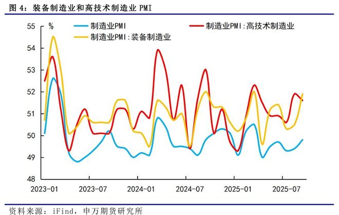 当前中国正处于新旧动能转换时期,以房地产为主的传统经济发展模式承压,新兴行业还在不断培育壮大的过程中。2021年以来,房地产进入调整周期,房地产销售低迷,新开工、施工进度放缓,房企拿地意愿降低,房地产上下游需求均受到拖累,钢材、水泥、玻璃等大宗商品和家电、家具等地产后周期商品需求减少,导致行业产能过剩,压制了相关产品的出厂价格。2022年到2024年,房地产开发投资同比增速分别为-10%、-9.6%、-10.6%,商品房销售面积同比增速分别为-24.3%、-8.5%、-12.9%,房地产开发投资增速远低于整体投资水平,大幅拖累整体投资增速。由于房地产在我国家庭财富中占据较高比重,房价下跌使得居民财富缩水,资产负债表收缩,居民对未来收入预期也缺乏信心,导致居民消费意愿和消费能力下降,预防性储蓄增加,对消费行业也造成冲击。在经济增速放缓、内需疲软的情况下,供需矛盾难以化解,企业面临激烈的市场竞争,更多选择降价去库存,工业品出厂价格受到压制,导致PPI长期处于低位。随着新质生产力的不断培育壮大,新动能逐步引领经济开始复苏,高技术制造业等景气度较高,对PPI形成一定支撑。