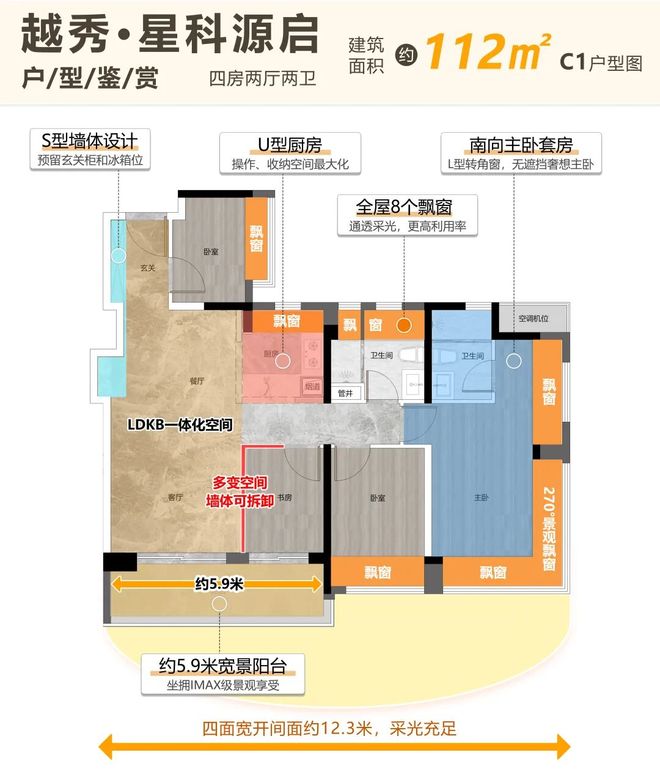 星科源启的户型设计,正是对这一核心痛点的正面回应。通过更优化的工程力学,设计师将本应在室内的承重墙,最大限度地移到了建筑外沿,赋予了室内空间“全生命周期”可变性。