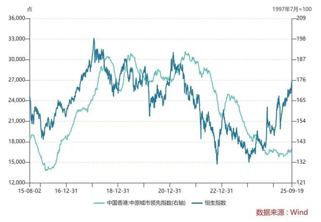中原城市领先指数与恒生指数趋势对比 图源:Wind