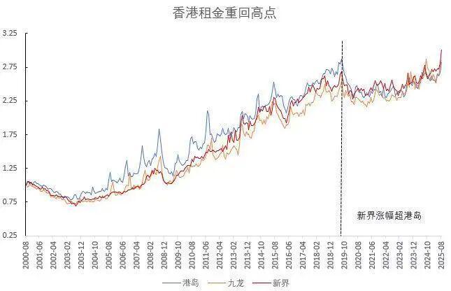 楼市销售呈现“量价齐升”态势,而香港租金水平已率先回升至历史高位。至今年8月,香港三大板块租金水平整体超越2019年8月的高点。