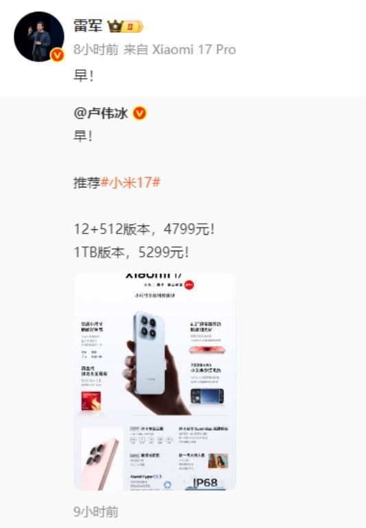 图为雷军微博发文截图