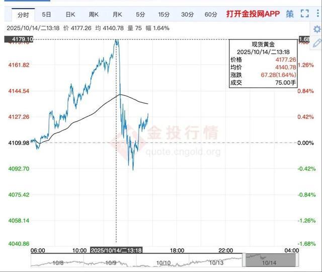 10月14日国际现货黄金价格走势。(来源:金投网)