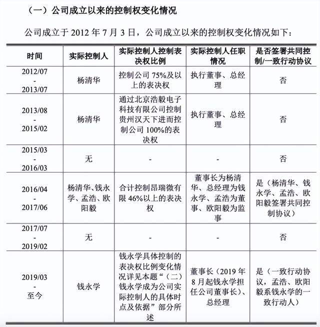 “《终止协议》的签署背景为杨清华拟逐步从股权及管理上退出昂瑞微有限, 将主要精力用于经营贵州汉天下及苏州汉天下,因此各方基于公司当时的实际情 况,同意终止《共同控制协议》。公司再度认定无实际控制人。”昂瑞微表示。