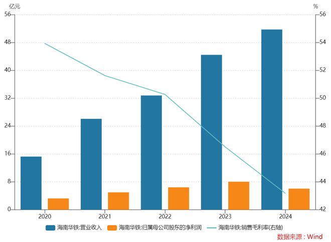 2021年至2024年,海南华铁营业收入同比增幅分别为71.02%、25.75%、35.55%、16.38%;归母净利润同比增幅分别为54.31%、28.74%、25.19%、-24.49%。