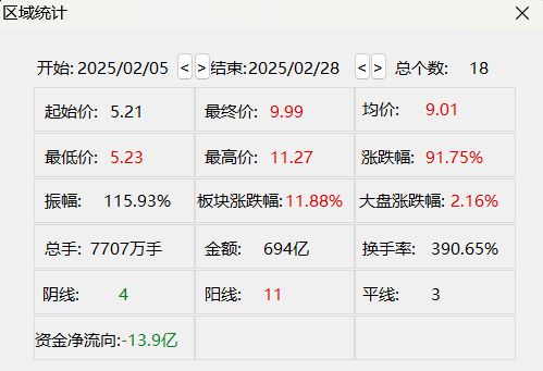 今年年初,该股均价维持在5元/股左右,成交额在1-4亿元左右徘徊,换手率也在1%-3%徘徊。到了2月初,该股股价出现久违的涨停板,成交量逐步放大,交投开始活跃。2月12日至2月28日之间的13个交易日,该股在每个交易日内的成交额均在40亿元以上,换手率均超过20%。