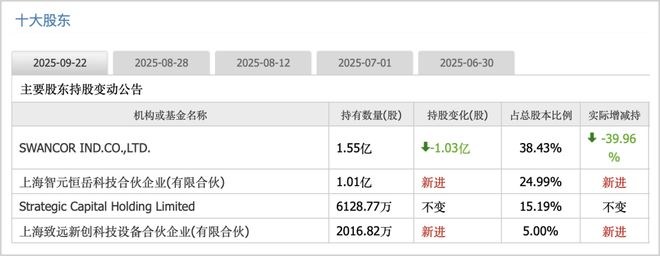 两个月后的9月23日,该笔交易顺利完成,上海智元恒岳和上海致远新创科技设备合伙企业合计拿到29.99%的股份,而原控股股东SWANCOR萨摩亚直接放弃表决权,将控制权拱手奉上。