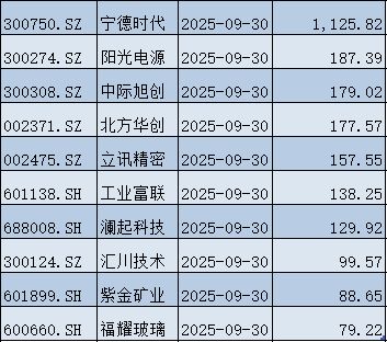 紫金矿业(601899)、恒瑞医药(600276)的持股市值超过300亿元;长江电力(600900)、福耀玻璃(600660)的持股市值超过200亿元。