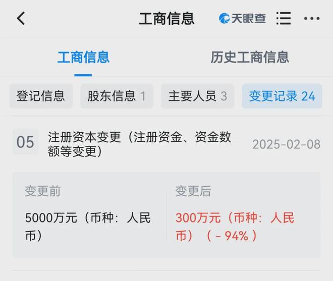 她在今年2月把安东尼公司的注册资本变更了: