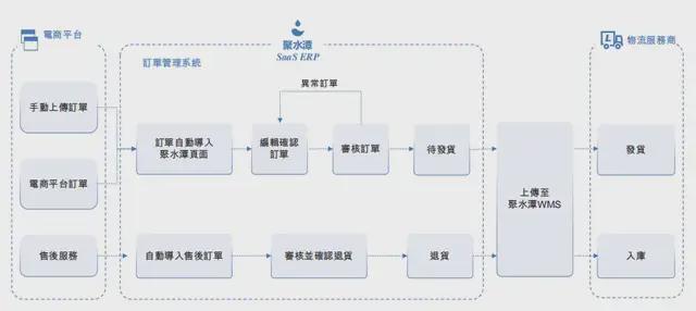 一旦买家在商家的网店下单,电商平台便会生成订单,并自动加载至ERP产品。结合系统自动审核及人工干预审核,商家可在不同的电商平台上审核及管理来自其网店的订单。一旦订单被审核及处理,即可交付予买家。ERP产品与物流服务提供商连接,商家可轻松安排送货。