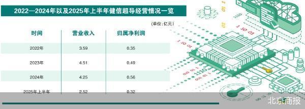 财务数据显示,2022—2024年以及2025年上半年,健信超导实现的营业收入分别为3.59亿元、4.51亿元、4.25亿元、2.52亿元;归属净利润分别为3463.5万元、4873.47万元、5578.39万元、3191.84万元。
