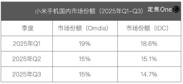 小米是今年份额变化最大的厂商,从第一季度的19%到第三季度的15%,排名从第一跌至第四。