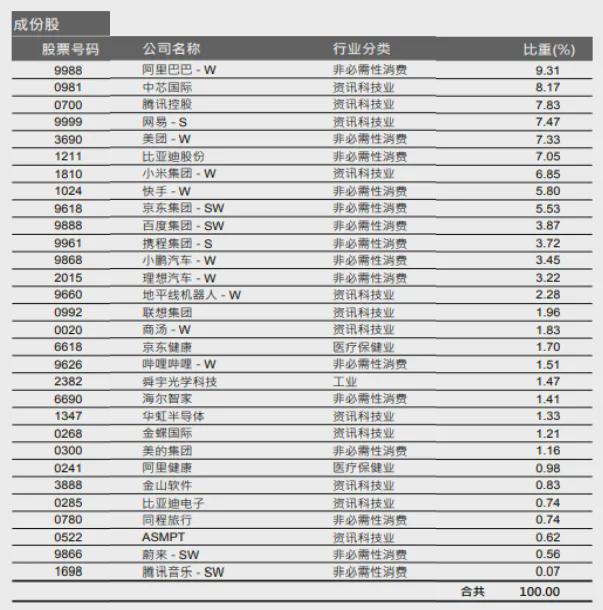 它是30家港股科技龙头的“全家福”,阿里、腾讯、美团、中芯国际、比亚迪、快手、蔚来......这些我们耳熟能详的大企业都在里边,行业覆盖互联网、半导体、新能源汽车,大部分是你在A股买不到的核心科技资产,在AI领域的竞争力也十分强劲。