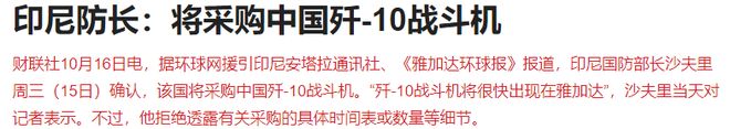 据报道,印尼国防部长沙夫里周三(15日)确认,该国将采购中国歼-10战斗机,军工板块小幅走强。