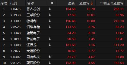昨晚美股闪迪暴涨超13%,今天A股存储板块暴涨,德明利、三孚股份涨停,香农芯创盘中一度涨停,收盘暴涨超16%。