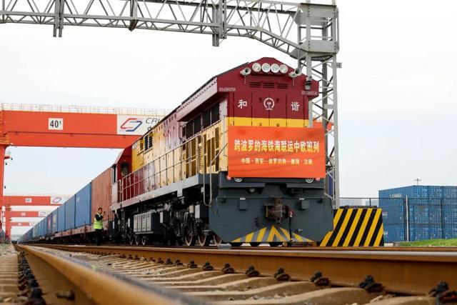 9月26日,首趟跨波罗的海铁海联运中欧班列(西安—汉堡)顺利开行。图为班列整装待发。中新社发 刘盼利 摄