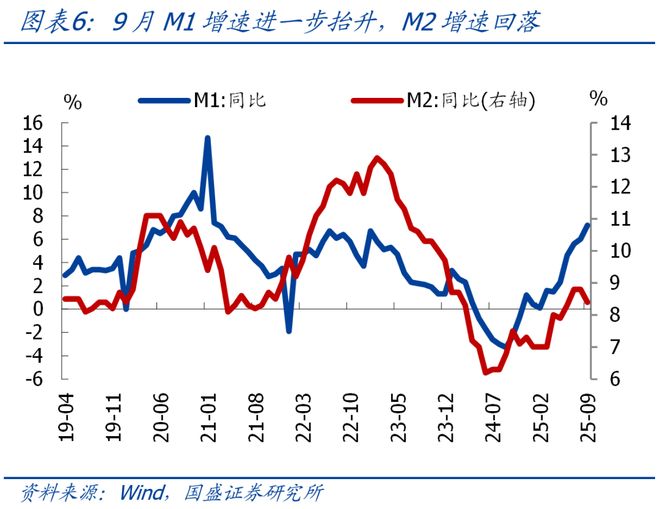 事件:2025年9月新增人民币贷款1.29万亿,前值5900亿,预期1.39万亿,去年同期1.59万亿;新增社融3.53万亿,前值2.57万亿,预期3.28万亿,去年同期3.76万亿;存量社融增速8.7%,前值8.8%;M2同比8.4%,前值8.8%;M1同比7.2%,前值6%。 核心观点:总量上,9月新增信贷、新增社融均低于季节性,存量社融增速进一步回落,主因政府债券支撑减弱,本质上还是需求不足。结构上,居民部门短期贷款同比降幅走扩,指向消费仍偏弱;中长期贷款同比多增,但主要是低基数支撑;企业票据冲量特征缓解,但短贷同比大幅多增,中长期贷款连续3个月同比少增,财政发力效果可能不及预期。值得注意的是,M1增速进一步升至7.2%,是2021年2月以来的最高水平,除基数回落外,居民存款活化可能是主要支撑,有望继续为市场带来增量资金,我们也继续提示:宏观环境依然是市场的好朋友,建议继续乐观点、乘势而上。往后看,鉴于当前经济回落有加速迹象,政策“适时加力”的必要性和可能性提升,宽松还是大方向,年内再降准降息可期。