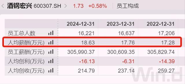 至2024年末,酒钢宏兴的职工总数超过1.6万人,比2023年末有所减少,去年人均税前薪酬18.6万元,增加8700元。这份薪酬,在甘肃省上市企业中还是相当有竞争力的。