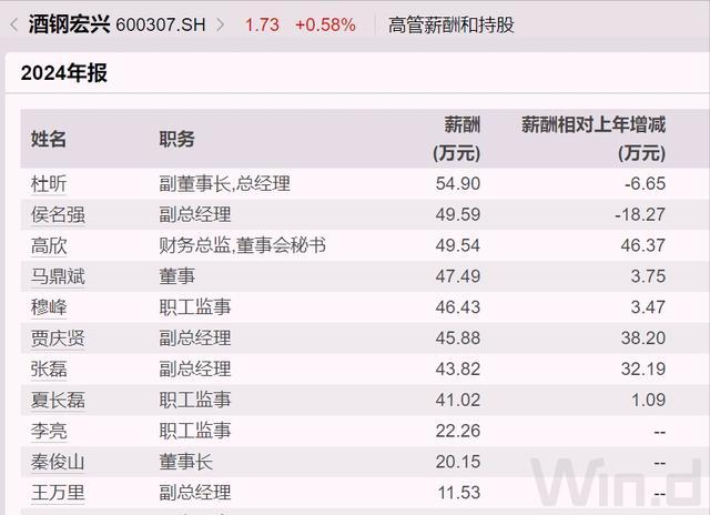 根据年报披露,杜昕2024年税前薪酬约为55万元,是所有高层中最高的,董事长秦俊山刚过20万元,其余高层薪酬多在40万元至50万元之间。