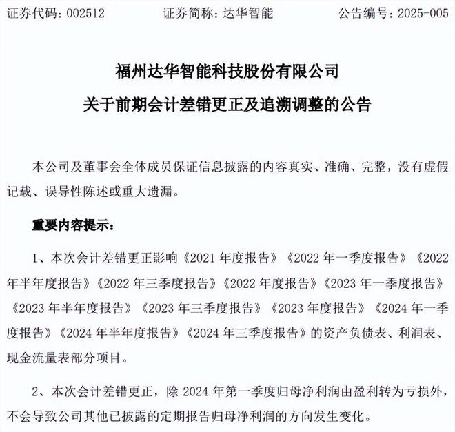查询以往公告,公司曾在2025年1月27日发布《关于前期会计差错更正及追溯调整的公告》。