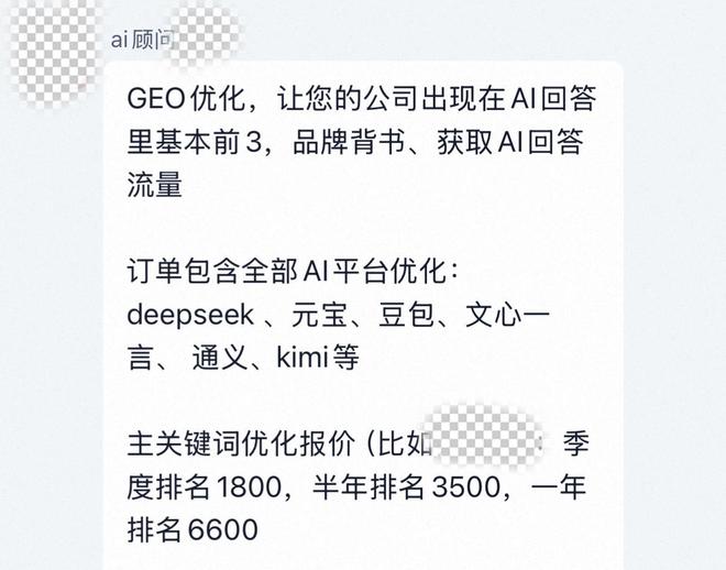 红星资本局调查发现,有商家报价6600元一年,称可以让公司基本出现在AI回答前3的位置。