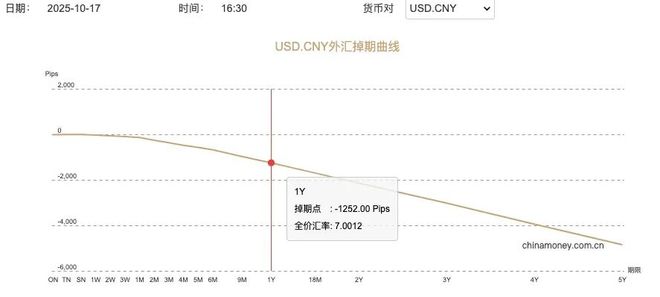 比如,衡量未来三个月人民币波动的美元兑人民币 三个月隐含波动率指标 显示,人民币未来三个月时间在6.9433至7.2195区间内交易的可能性为78%;再比如,10月17号,人民币外汇掉期曲线显示三个月后,人民币汇率为7.1165。