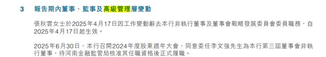 与此同时,非执行董事层面也出现变动。4月17日,张秋云辞去中原银行非执行董事及董事会战略发展委员会委员职务后,转任中原证券(601375.SH)董事长。6月末,该行选举李文强接替张秋云原有职务。