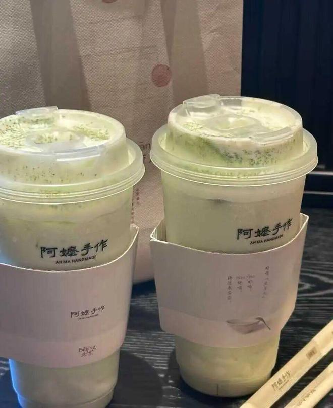 与此同时,另一边的阿嬷手作也在北京出奇招。品牌以老北京豆汁儿为灵感,推出新品“好喝豆汁儿”奶茶,主打“三重豆香”:豆腐滑嫩、油莎豆乳甜香和碧螺春茶自带的豆香,还未上线就引发了消费者好奇,还有网友排队超3小时。