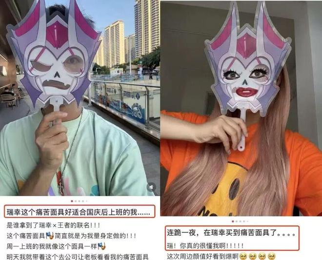 “痛苦面具”原是游戏中的一件装备,因图标上那张“痛苦表情”脸而成为网络热梗。瑞幸把它用作饮品名,可谓一语双关:既呼应联名主题,也暗示了那种“喝下去又酸又爽”的复杂感受。