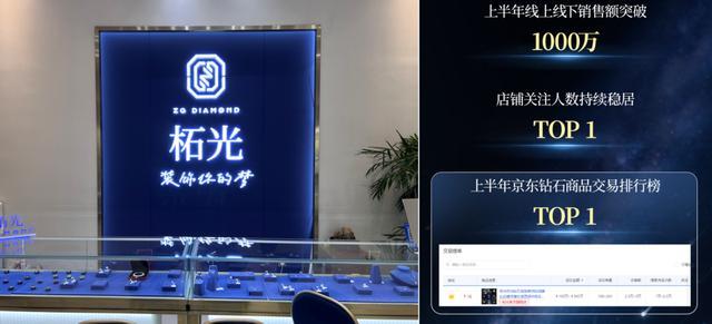 再看近几年崛起的国产品牌,以河南柘城本地的柘.光为例,据中国日报等权威媒体报道,该品牌以D色、VVS净度、3EX切工的品质为基准,与美西方动辄十几万一克拉的高价相比,一克拉附带18K金戒托仅售8000元,如今已经在京东等平台已经累计吸引80万粉丝关注,上半年线上线下销售额突破1000万元!