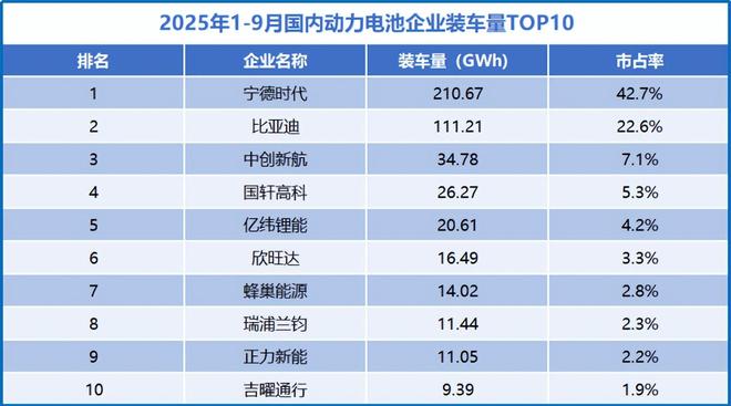 这套“混动筑基、快充破局”的组合拳,使得欣旺达在2025年1-9月成功冲进了国内动力电池装车量第六名,算是站稳了脚跟。