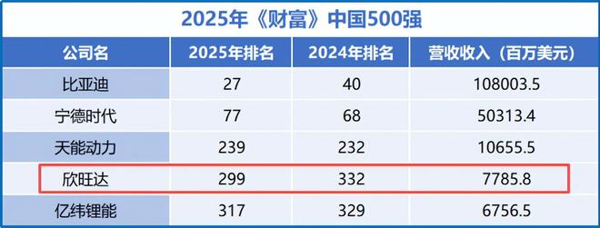 这份耀眼的成绩,也直接推动欣旺达再度登上《财富》中国500强榜单,且排名一举超过亿纬锂能,稳稳地站在了第299位,实现了从丑小鸭到白天鹅的华丽蜕变。