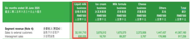 具体到液态奶业务,2025年上半年蒙牛奶液态奶收入为321.9亿元,在总营收中的占比从81.2%降至77.4%。而伊利液态奶业务收入达361.26亿元,虽然同比微降,但降幅远小于蒙牛。