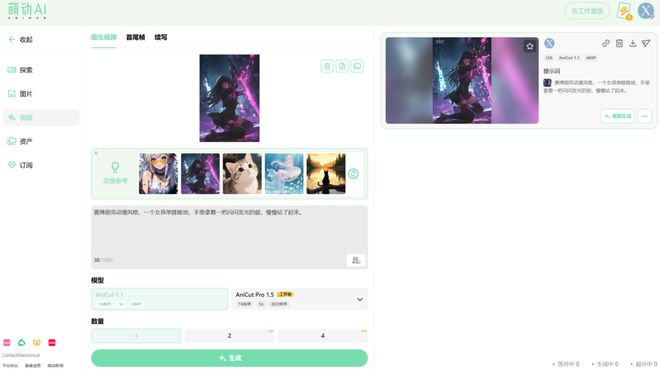 一个月后,曾在日本爆火的AI视频生成平台“Animon”于国内上线,这个专注于动漫领域的AI工具被赋予了一个更加本土化的名字“萌动AI”,它可以仅凭借用户输入的一张图片,甚至一个想法,即完成一段动漫视频的生成。